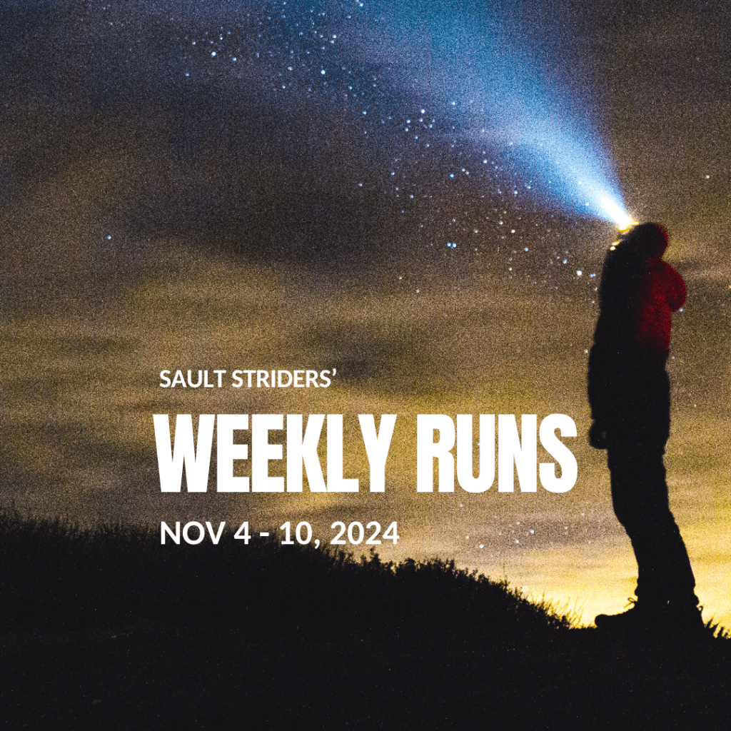 Good morning, Striders! The sun is now setting before we finish our evening runs – please bring a headlamp and wear reflective/light coloured clothing to ensure safe footing and visibility.
